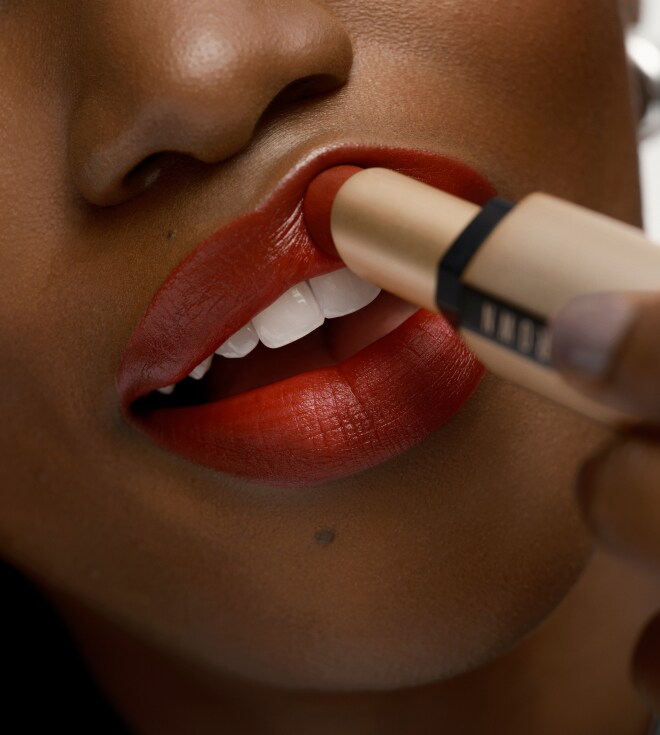 Swipe on Luxe Matte Lipstick in After Hours for a bold, vibrant finish.
