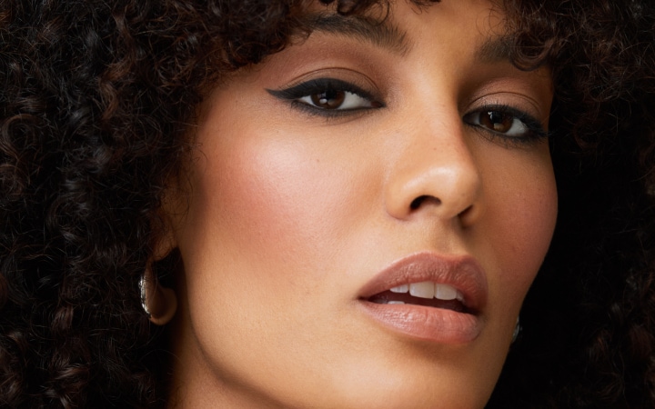 brings the drama. To balance out the bold eye, we add a natural-looking flush to cheeks and lips for a very wearable soft