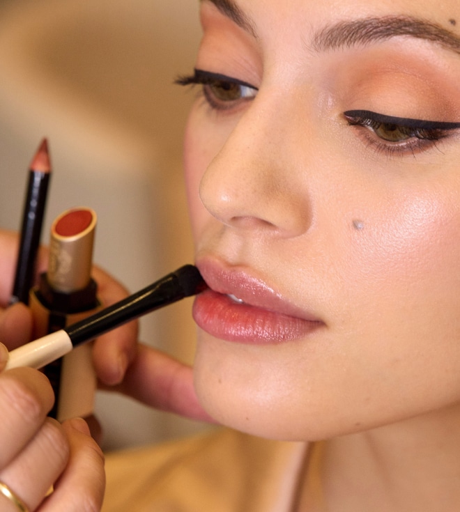 Use a brush to buff Long-Wear Cream Shadow Stick in Cinnamon into the crease of eye and along lower lash line